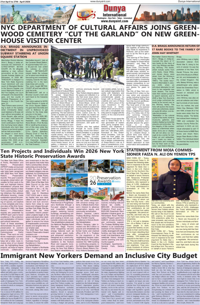 نمازِ جنازہ 21 اپریل کو دن 11 بجے ادا کی جائے گی بروکلین، نیویارک: (منظور حسین سے) معروف سماجی و کاروباری شخصیت تسنیم شہزاد کے بڑے بھائی تنویر شہزاد پاکستان … Read More