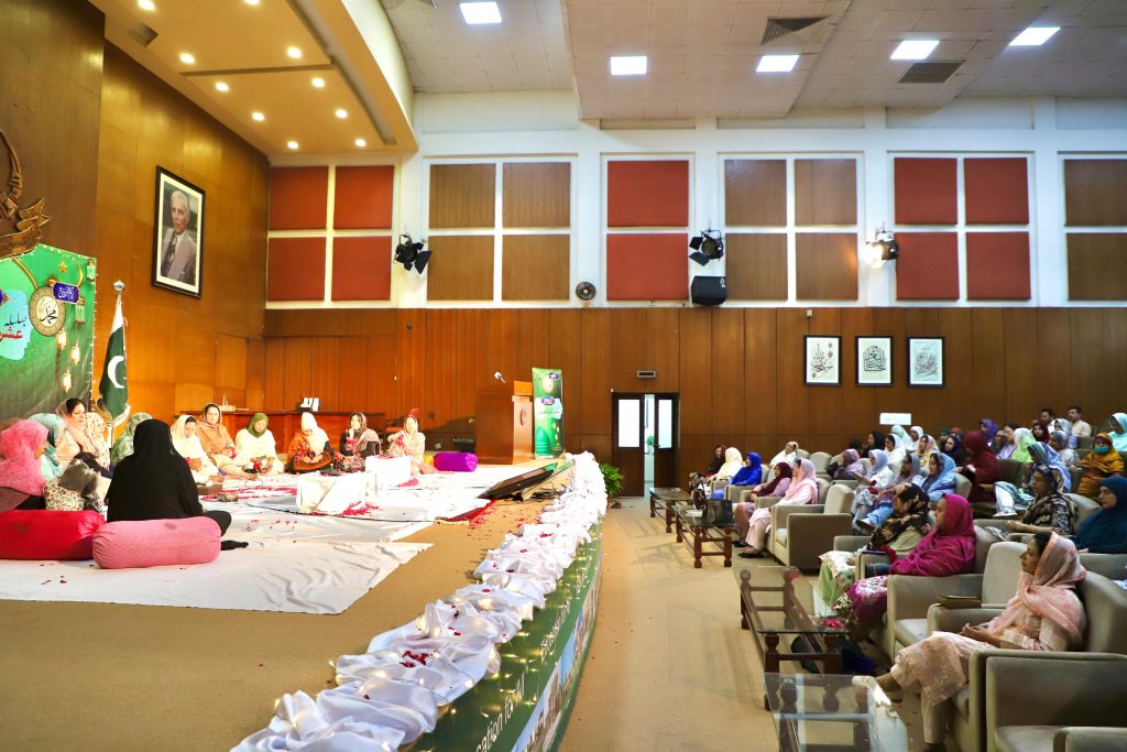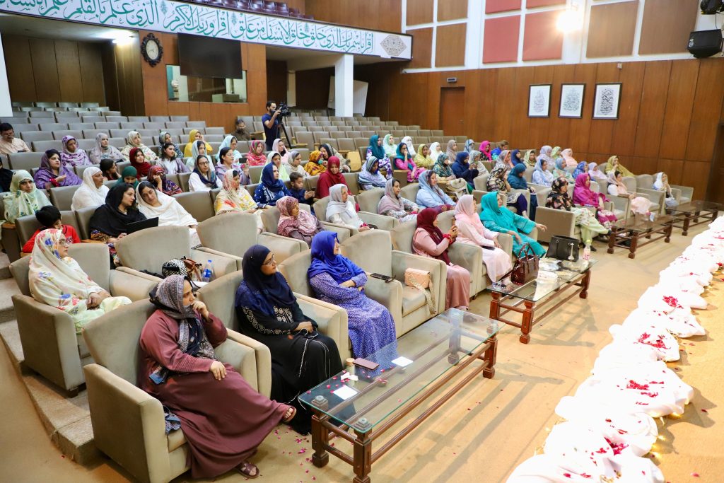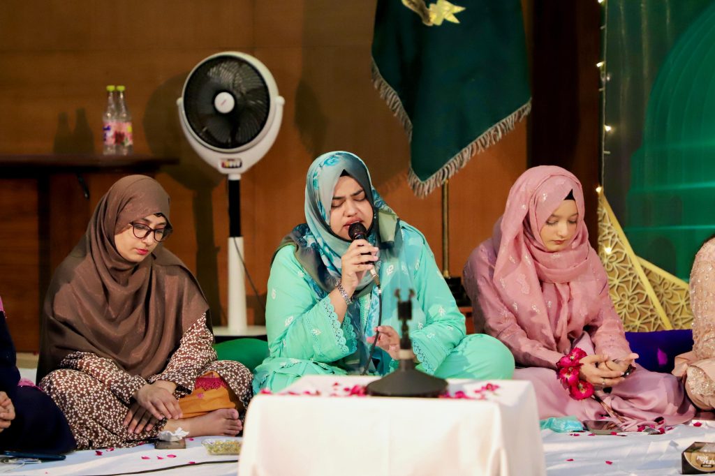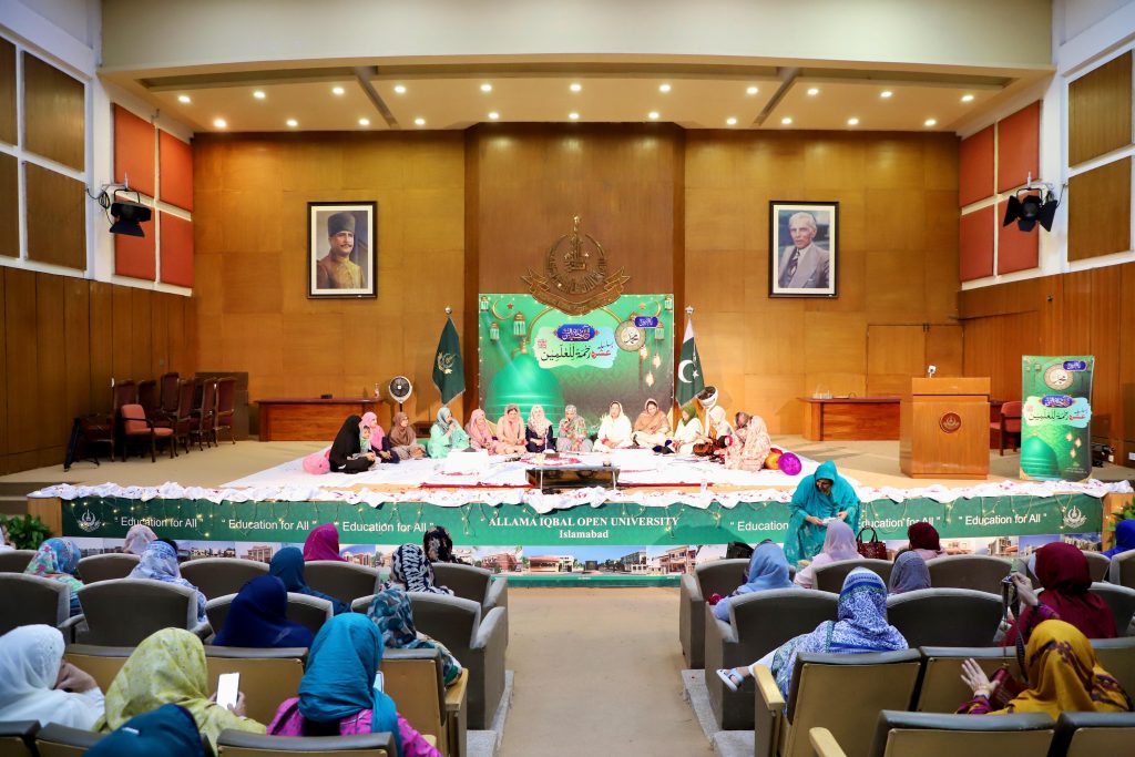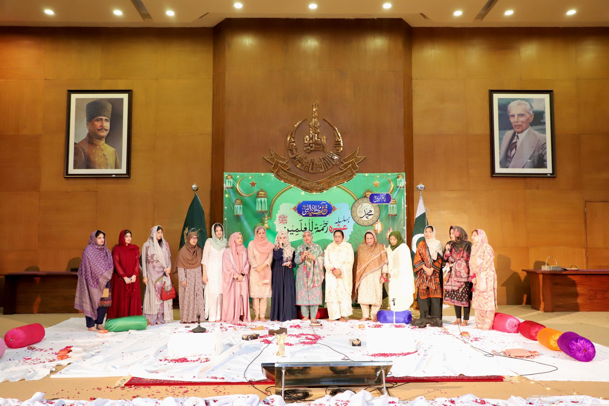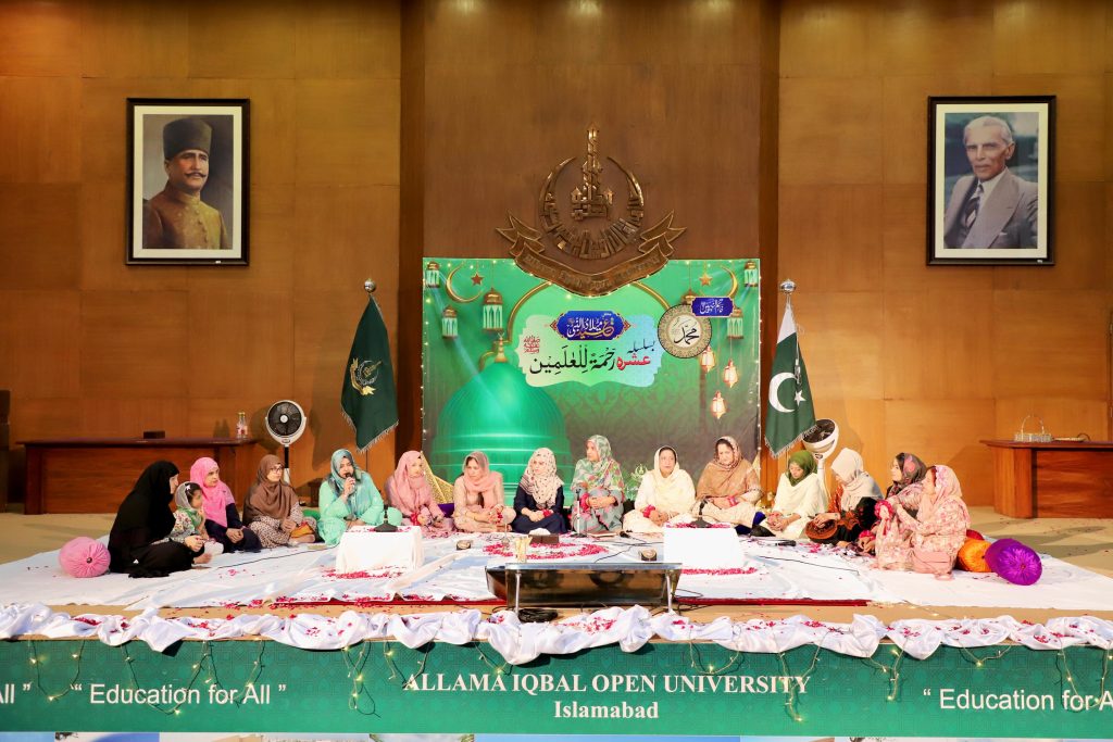علامہ اقبال اوپن یونیورسٹی میں عشرہ رحمت للعالمینؐ مذہبی عقیدت و احترام کے ساتھ منایا جارہا ہے۔ وائس چانسلر پروفیسر ڈاکٹر ناصر محمود کی خصوصی ہدایت پر اس عشرے کے دوران مختلف علمی، دینی اور روحانی تقریبات کا اہتمام کیا جا رہا ہے تاکہ طلبہ و طالبات کو سیرتِ طیبہؐ کے سنہری اصولوں سے روشناس کرایا جا سکے۔اس سلسلے میں گزشتہ روز شعبہ پاکستان اسٹڈیز کے زیراہتمام خواتین کی ایک پرنور محفل میلاد منعقد ہوئی۔ پروگرام میں 15 سے زائد خواتین نعت خواں نے بارگاہِ رسالتؐ میں عقیدت کے پھول نچھاور کیے۔ نعتیہ کلام کی گونج سے ہال معطر ہو گیا اور شرکاء بار بار ”سبحان اللہ” کے نعروں سے اپنی روحانی کیفیت کا اظہار کرتے رہے۔محفل میلاد کی خصوصیت یہ تھی کہ اسے یونیورسٹی کے ریڈیو چینل ایف ایم 91.6 سے براہِ راست نشر کیا گیا تاکہ زیادہ سے زیادہ سامعین اس بابرکت محفل میں شامل ہو سکیں۔شرکاء نے شعبہ پاکستان اسٹڈیز کی چیئرپرسن، ڈاکٹر ثمینہ یاسمین کو میلاد النبی ﷺ کے کامیاب اور شایانِ شان انعقاد پر دلی مبارکباد پیش کی۔تقریب کے اختتام پر ملک و ملت کی سلامتی، سیلاب متاثرین کی بحالی، فلسطین و غزہ کے مظلوم مسلمانوں کی نصرت، یونیورسٹی کی ترقی اور پاکستان کی قیامت تک بقا و استحکام کے لیے اجتماعی دعا کی گئی۔