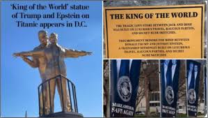 امریکا کے دارالحکومت واشنگٹن ڈی سی میں امریکی کانگریس کی عمارت کے قریب ایک متنازع مجسمہ نصب کیا گیا ہے جس میں امریکی صدر ڈونلڈ ٹرمپ اور بدنام زمانہ سرمایہ کار جنسی مجرم جیفری ایپسٹین کو ٹائٹینک فلم کے مشہور منظر کی طرح دکھایا گیا ہے۔