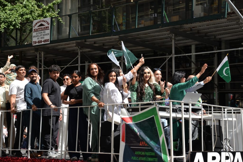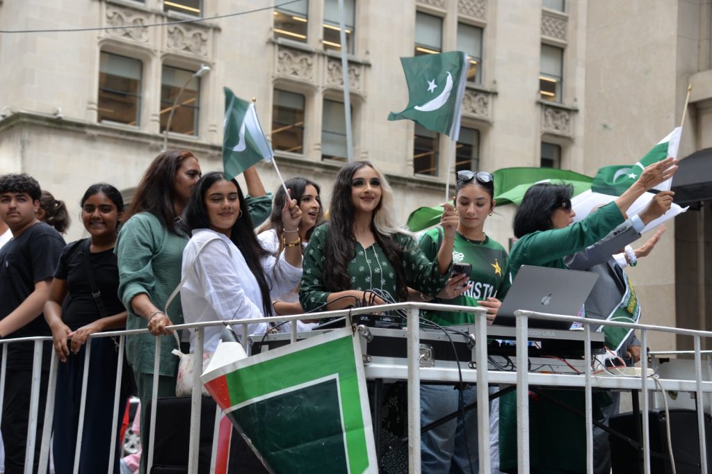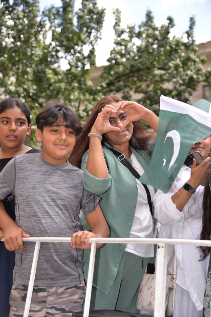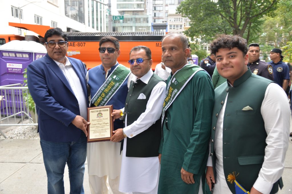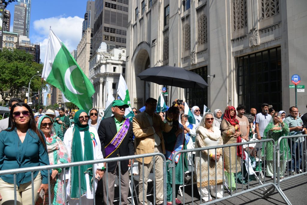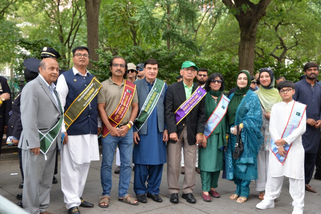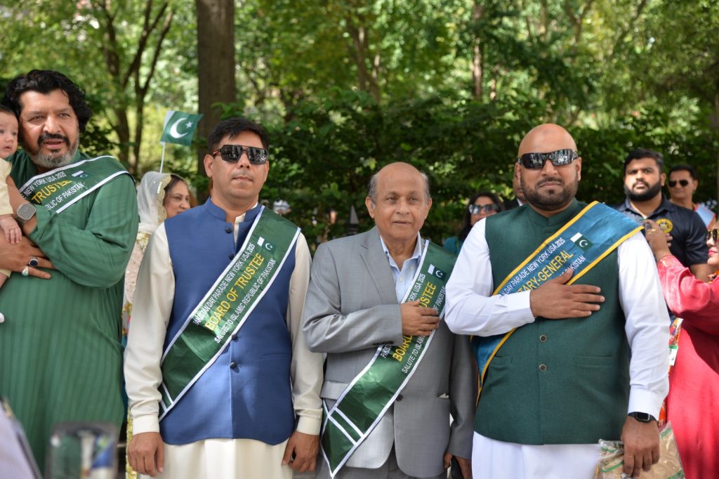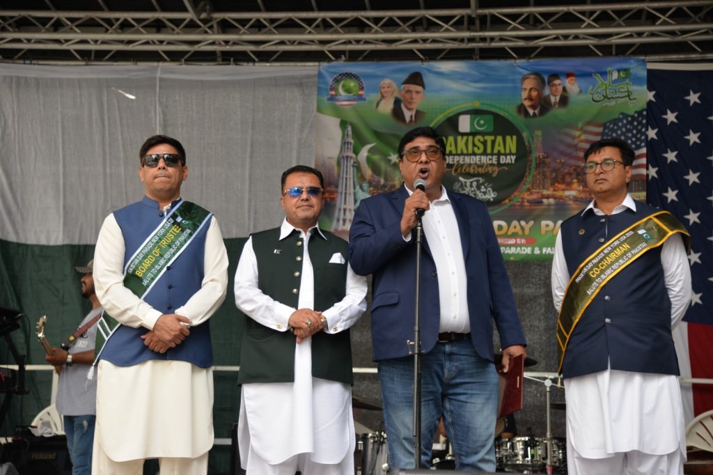پاکستان کی آزادی کی 78 ویں سالگرہ کے موقع پر نیویارک کے کیپیٹل مین ہیٹن میں 41 ویں پاکستان ڈے پریڈ کمیٹی کے زیر انتظام منائے جانے والی جشن آزادی کی تقریب میں پاکستانی کمیونٹی سمیت سٹی اور سٹیٹ آفیشلز کی ایک بہت بڑی تعداد نے شرکت کی جہاں پر ہر طرف رنگا رنگ پاکستانی پرچم دکھائی دیے اور اس پریڈ کی سب سے بڑی خوبصورتی اس میں شامل مختلف کمپنیوں کے فلوٹس کی شمولیت تھی’ منیر لودھی کی سربراھی میں ہونے والی یہ خوبصورت پریڈ صبح 11 بجے سے شام چھ بجے تک نیویارک کے مڈ ٹاؤن مین ہیٹن کے 26 میں سٹریٹ سے لے کر 38 ویں سٹریٹ تک منعقد کی گئی جس میں پاکستانی ثقافت روایات اور یکجہتی کا مظاھرہ کیا گیا پاکستان انڈیپینڈنس ڈے پریڈ اینڈ فیئر کمیٹی کی جانب سے شرکا کے لئیے نہ صرف فری حلوہ پوری ناشتے کا اہتمام کیا گیا جبکہ کمیٹی انتظامیہ کی جانب سے خوش ذائقہ کھانوں اور دیسی بازار کے ثقافتی سٹالز روایتی کھانے اور قومی نغمے شامل تھے نیویارک کے کیپیٹل مین ہیٹن میں اتوار کے روز پاکستانی نژاد امریکیوں اور دیگر کمیونٹیز نے بھرپور جوش و جذبے کے ساتھ پاکستان کا 78واں یوم آزادی منایا پریڈ میں مرد خواتین اور بچے قومی لباس میں ملبوس پاکستان زندہ باد” اور “قائد اعظم زندہ باد” کے نعرے لگاتے رہے تقریب میں شامل کمیٹی انتظامیہ جن میں منیر لودھی’مرزا خاور بیگ’ جان احمد’ اسد چوہدری’ قاسم مجید’ مظفر بھٹہ اور کمیونٹی کے دیگر ممبران کا کہنا تھا کہ اج کا دن ہمارے لیے فخر کا دن ہے اور ہمیں چاہیے کہ امریکی معاشرے میں بھرپور شمولیت اور مثبت کردار ادا کریں تاکہ ہم پاکستان کا جھنڈا سر بلند کر سکیں