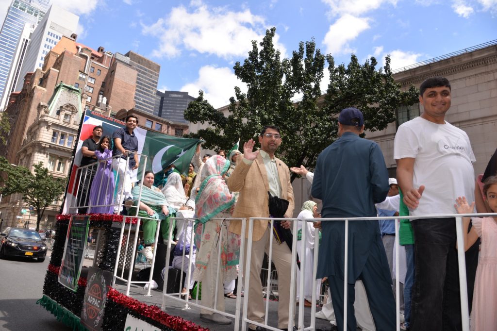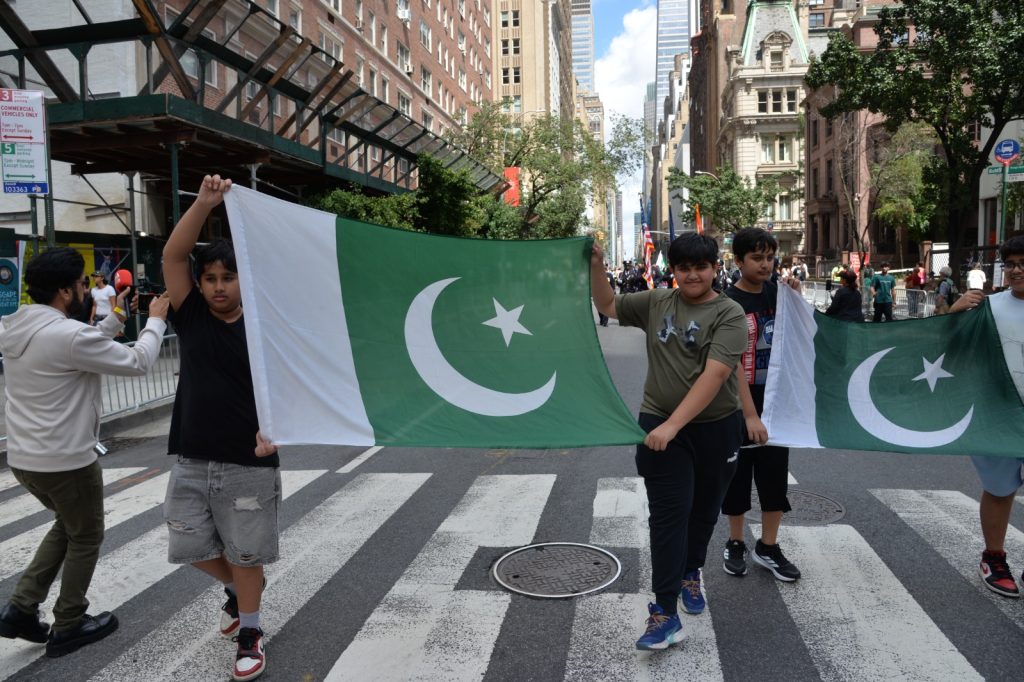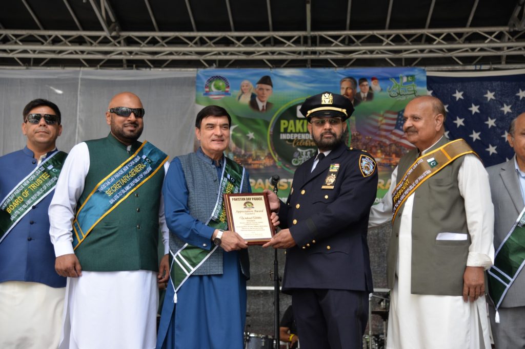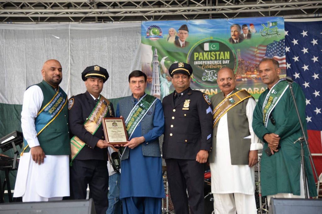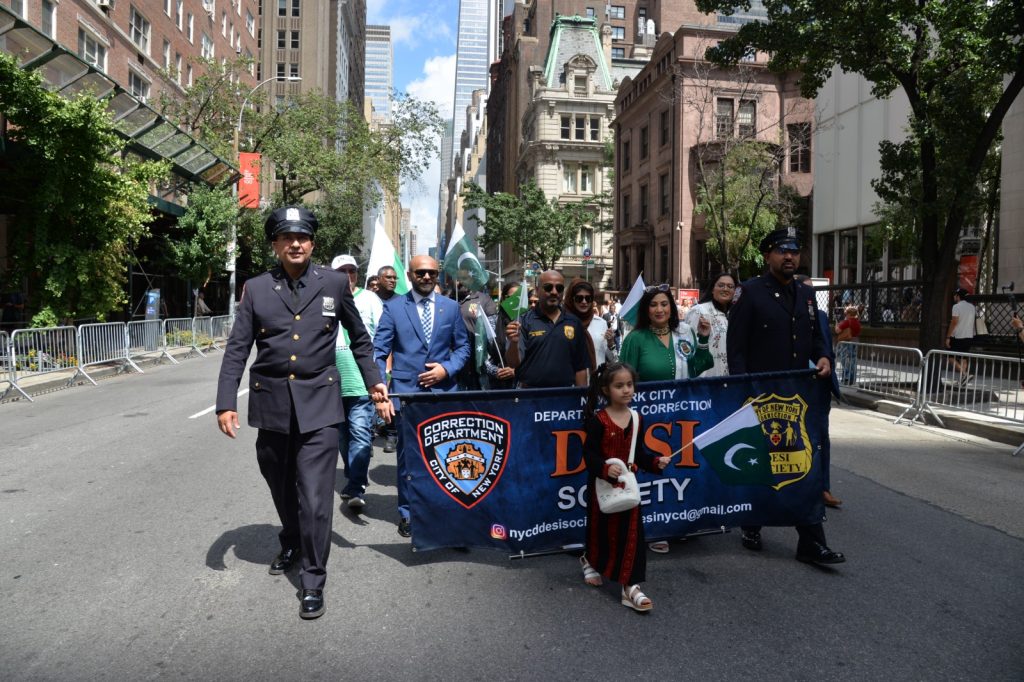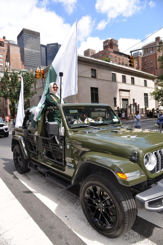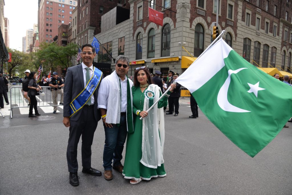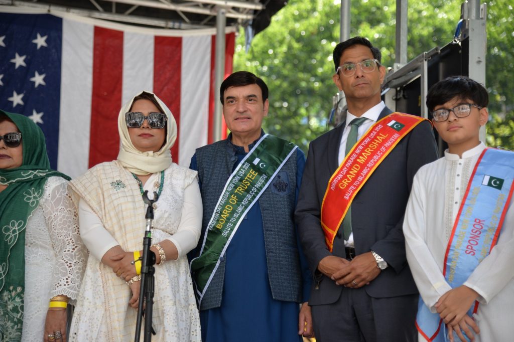 پاکستان کی آزادی کی 78 ویں سالگرہ کے موقع پر نیویارک کے کیپیٹل مین ہیٹن میں 41 ویں پاکستان ڈے پریڈ کمیٹی کے زیر انتظام منائے جانے والی جشن آزادی کی تقریب میں پاکستانی کمیونٹی سمیت سٹی اور سٹیٹ آفیشلز کی ایک بہت بڑی تعداد نے شرکت کی جہاں پر ہر طرف رنگا رنگ پاکستانی پرچم دکھائی دیے اور اس پریڈ کی سب سے بڑی خوبصورتی اس میں شامل مختلف کمپنیوں کے فلوٹس کی شمولیت تھی’ منیر لودھی کی سربراھی میں ہونے والی یہ خوبصورت پریڈ صبح 11 بجے سے شام چھ بجے تک نیویارک کے مڈ ٹاؤن مین ہیٹن کے 26 میں سٹریٹ سے لے کر 38 ویں سٹریٹ تک منعقد کی گئی جس میں پاکستانی ثقافت روایات اور یکجہتی کا مظاھرہ کیا گیا پاکستان انڈیپینڈنس ڈے پریڈ اینڈ فیئر کمیٹی کی جانب سے شرکا کے لئیے نہ صرف فری حلوہ پوری ناشتے کا اہتمام کیا گیا جبکہ کمیٹی انتظامیہ کی جانب سے خوش ذائقہ کھانوں اور دیسی بازار کے ثقافتی سٹالز روایتی کھانے اور قومی نغمے شامل تھے نیویارک کے کیپیٹل مین ہیٹن میں اتوار کے روز پاکستانی نژاد امریکیوں اور دیگر کمیونٹیز نے بھرپور جوش و جذبے کے ساتھ پاکستان کا 78واں یوم آزادی منایا پریڈ میں مرد خواتین اور بچے قومی لباس میں ملبوس پاکستان زندہ باد” اور “قائد اعظم زندہ باد” کے نعرے لگاتے رہے تقریب میں شامل کمیٹی انتظامیہ جن میں منیر لودھی’مرزا خاور بیگ’ جان احمد’ اسد چوہدری’ قاسم مجید’ مظفر بھٹہ اور کمیونٹی کے دیگر ممبران کا کہنا تھا کہ اج کا دن ہمارے لیے فخر کا دن ہے اور ہمیں چاہیے کہ امریکی معاشرے میں بھرپور شمولیت اور مثبت کردار ادا کریں تاکہ ہم پاکستان کا جھنڈا سر بلند کر سکیں