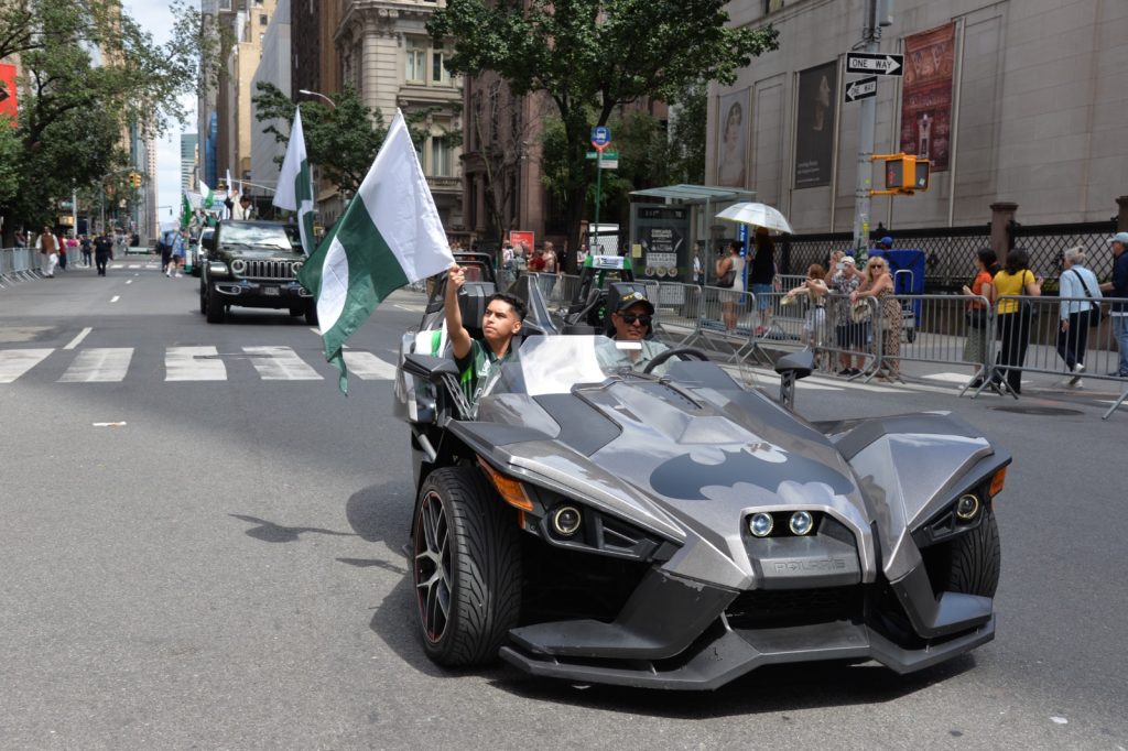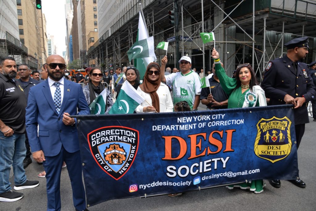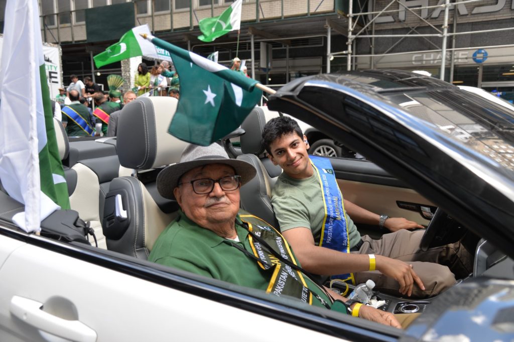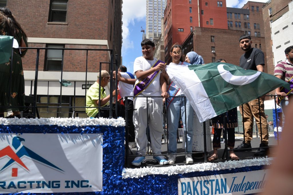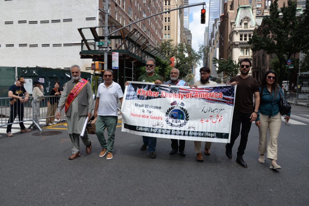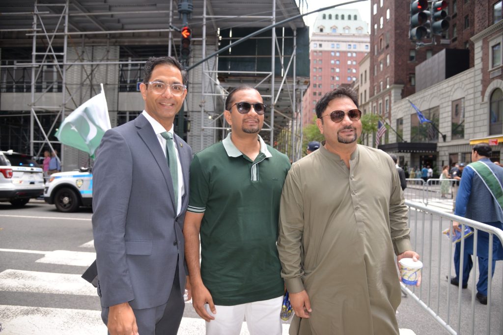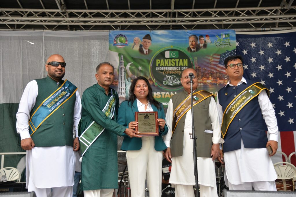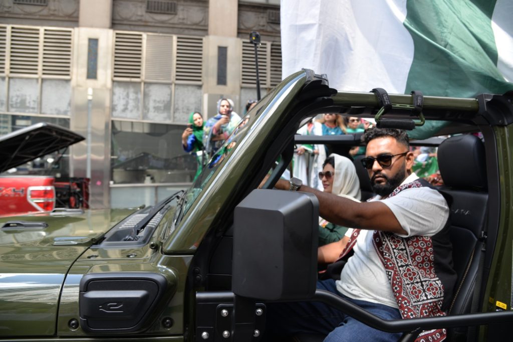 پاکستان کی آزادی کی 78 ویں سالگرہ کے موقع پر نیویارک کے کیپیٹل مین ہیٹن میں 41 ویں پاکستان ڈے پریڈ کمیٹی کے زیر انتظام منائے جانے والی جشن آزادی کی تقریب میں پاکستانی کمیونٹی سمیت سٹی اور سٹیٹ آفیشلز کی ایک بہت بڑی تعداد نے شرکت کی جہاں پر ہر طرف رنگا رنگ پاکستانی پرچم دکھائی دیے اور اس پریڈ کی سب سے بڑی خوبصورتی اس میں شامل مختلف کمپنیوں کے فلوٹس کی شمولیت تھی’ منیر لودھی کی سربراھی میں ہونے والی یہ خوبصورت پریڈ صبح 11 بجے سے شام چھ بجے تک نیویارک کے مڈ ٹاؤن مین ہیٹن کے 26 میں سٹریٹ سے لے کر 38 ویں سٹریٹ تک منعقد کی گئی جس میں پاکستانی ثقافت روایات اور یکجہتی کا مظاھرہ کیا گیا پاکستان انڈیپینڈنس ڈے پریڈ اینڈ فیئر کمیٹی کی جانب سے شرکا کے لئیے نہ صرف فری حلوہ پوری ناشتے کا اہتمام کیا گیا جبکہ کمیٹی انتظامیہ کی جانب سے خوش ذائقہ کھانوں اور دیسی بازار کے ثقافتی سٹالز روایتی کھانے اور قومی نغمے شامل تھے نیویارک کے کیپیٹل مین ہیٹن میں اتوار کے روز پاکستانی نژاد امریکیوں اور دیگر کمیونٹیز نے بھرپور جوش و جذبے کے ساتھ پاکستان کا 78واں یوم آزادی منایا پریڈ میں مرد خواتین اور بچے قومی لباس میں ملبوس پاکستان زندہ باد” اور “قائد اعظم زندہ باد” کے نعرے لگاتے رہے تقریب میں شامل کمیٹی انتظامیہ جن میں منیر لودھی’مرزا خاور بیگ’ جان احمد’ اسد چوہدری’ قاسم مجید’ مظفر بھٹہ اور کمیونٹی کے دیگر ممبران کا کہنا تھا کہ اج کا دن ہمارے لیے فخر کا دن ہے اور ہمیں چاہیے کہ امریکی معاشرے میں بھرپور شمولیت اور مثبت کردار ادا کریں تاکہ ہم پاکستان کا جھنڈا سر بلند کر سکیں
