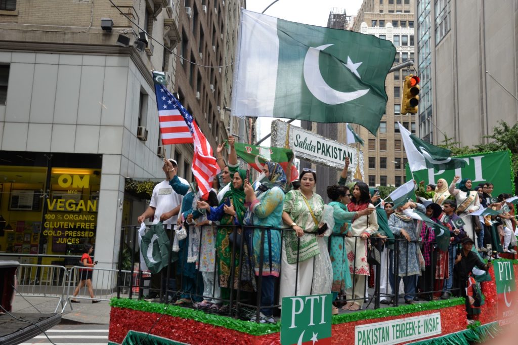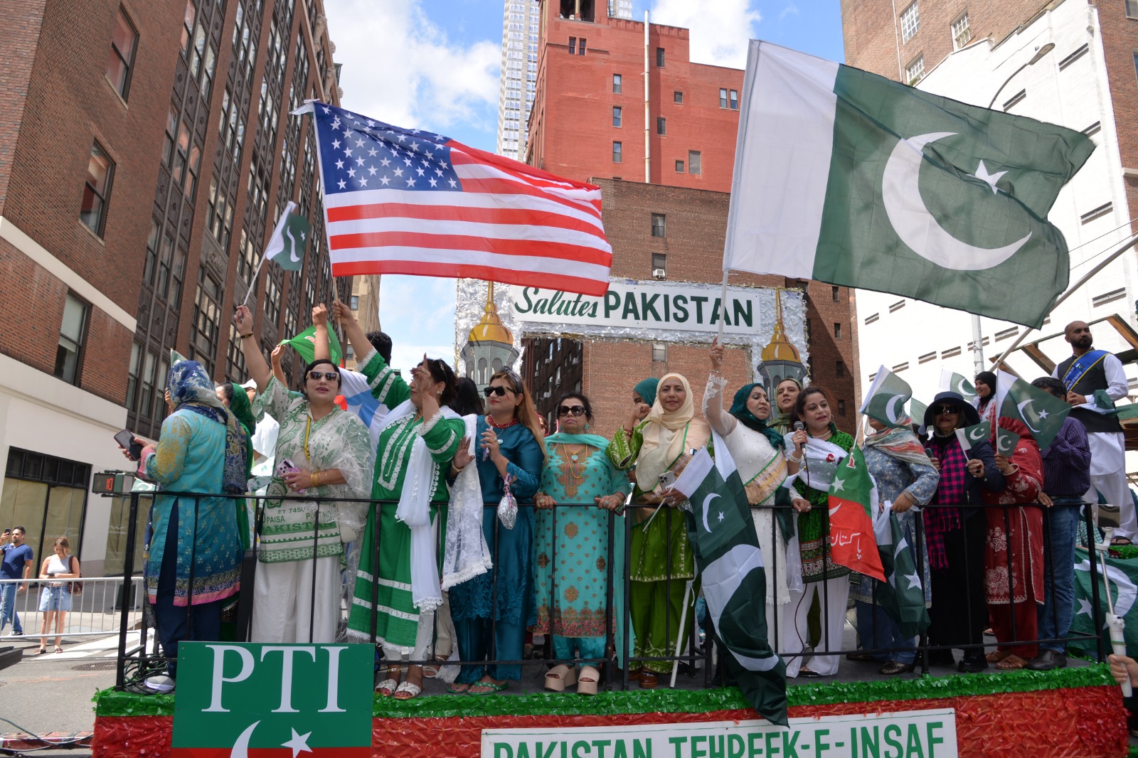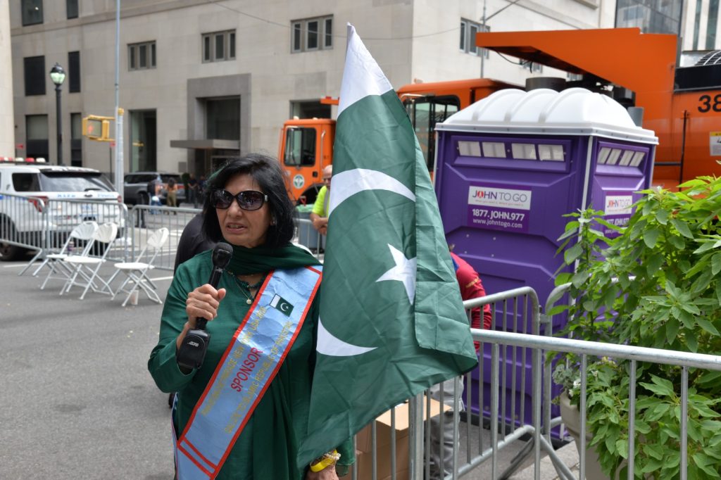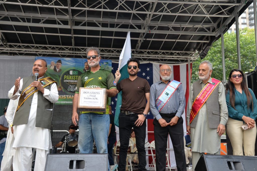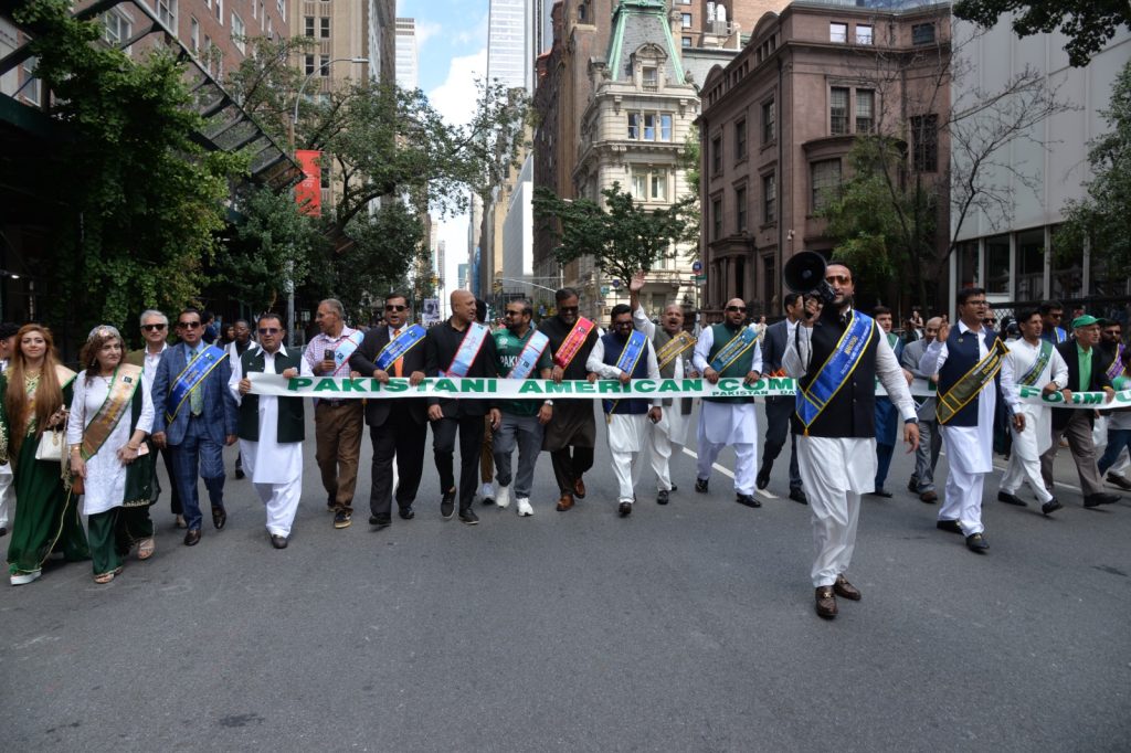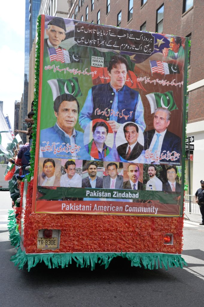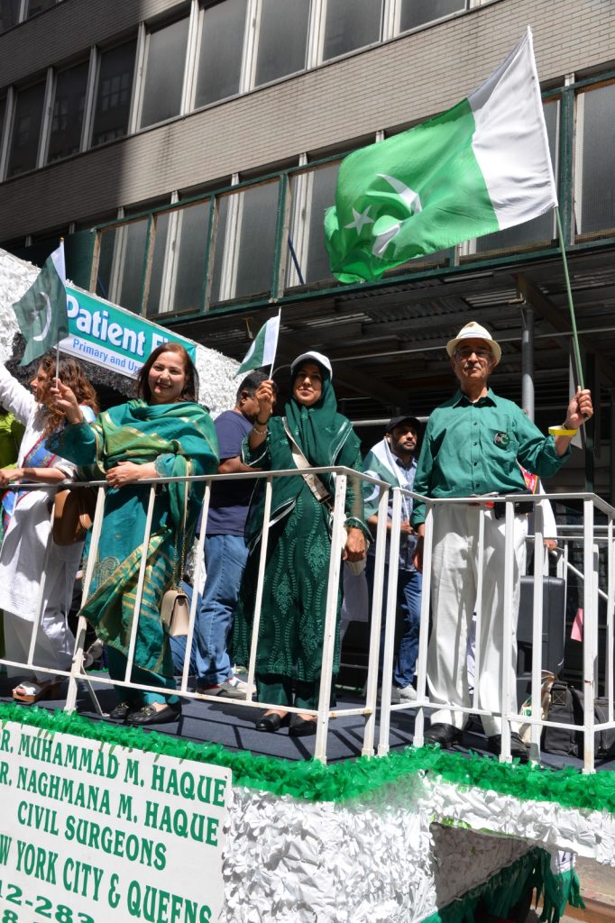 پاکستان کی آزادی کی 78 ویں سالگرہ کے موقع پر نیویارک کے کیپیٹل مین ہیٹن میں 41 ویں پاکستان ڈے پریڈ کمیٹی کے زیر انتظام منائے جانے والی جشن آزادی کی تقریب میں پاکستانی کمیونٹی سمیت سٹی اور سٹیٹ آفیشلز کی ایک بہت بڑی تعداد نے شرکت کی جہاں پر ہر طرف رنگا رنگ پاکستانی پرچم دکھائی دیے اور اس پریڈ کی سب سے بڑی خوبصورتی اس میں شامل مختلف کمپنیوں کے فلوٹس کی شمولیت تھی’ منیر لودھی کی سربراھی میں ہونے والی یہ خوبصورت پریڈ صبح 11 بجے سے شام چھ بجے تک نیویارک کے مڈ ٹاؤن مین ہیٹن کے 26 میں سٹریٹ سے لے کر 38 ویں سٹریٹ تک منعقد کی گئی جس میں پاکستانی ثقافت روایات اور یکجہتی کا مظاھرہ کیا گیا پاکستان انڈیپینڈنس ڈے پریڈ اینڈ فیئر کمیٹی کی جانب سے شرکا کے لئیے نہ صرف فری حلوہ پوری ناشتے کا اہتمام کیا گیا جبکہ کمیٹی انتظامیہ کی جانب سے خوش ذائقہ کھانوں اور دیسی بازار کے ثقافتی سٹالز روایتی کھانے اور قومی نغمے شامل تھے نیویارک کے کیپیٹل مین ہیٹن میں اتوار کے روز پاکستانی نژاد امریکیوں اور دیگر کمیونٹیز نے بھرپور جوش و جذبے کے ساتھ پاکستان کا 78واں یوم آزادی منایا پریڈ میں مرد خواتین اور بچے قومی لباس میں ملبوس پاکستان زندہ باد” اور “قائد اعظم زندہ باد” کے نعرے لگاتے رہے تقریب میں شامل کمیٹی انتظامیہ جن میں منیر لودھی’مرزا خاور بیگ’ جان احمد’ اسد چوہدری’ قاسم مجید’ مظفر بھٹہ اور کمیونٹی کے دیگر ممبران کا کہنا تھا کہ اج کا دن ہمارے لیے فخر کا دن ہے اور ہمیں چاہیے کہ امریکی معاشرے میں بھرپور شمولیت اور مثبت کردار ادا کریں تاکہ ہم پاکستان کا جھنڈا سر بلند کر سکیں