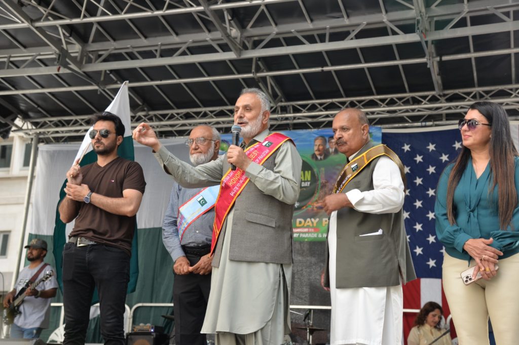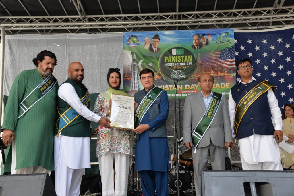 آج کا دن ہمارے لیے فخر کا دن ہے اور ہمیں چاہیے کہ امریکی معاشرے میں بھرپور شمولیت اور مثبت کردار ادا کریں تاکہ ہم پاکستان کا جھنڈا سر بلند کر سکیں” منیر لودھی”مرزا خاور بیگ’ جان احمد’ اسد چوہدری’ قاسم مجید’ مظفر بھٹہ