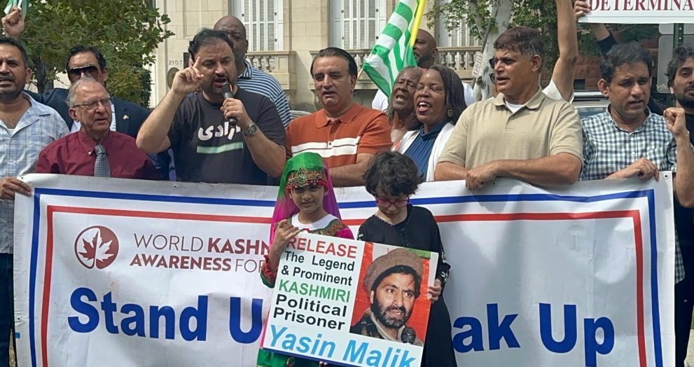 ورلڈ کشمیر اویئرنس فورم اور ٹرائی اسٹیٹ واشنگٹن کی کشمیری کمیونٹی کا اسیر کشمیری رہنماء یاسین ملک کی رہائی کیلئے بھارتی سفارتخانے کے سامنےمظاہرہ
